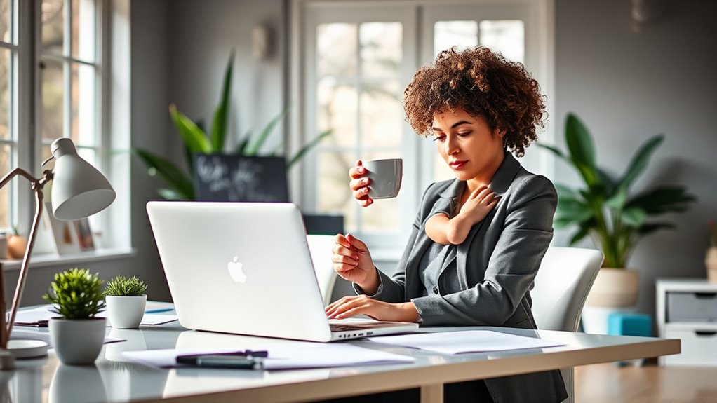Balancing work and caregiving starts with making daily task lists and prioritizing essential duties. Be open with your employer about your situation and explore flexible options like remote work or caregiver leave. Set clear boundaries for yourself, schedule time for self-care, and don’t hesitate to ask for help from family, friends, or support groups. Staying organized and adaptable helps you manage both roles effectively—continue exploring strategies that can make this balance easier.