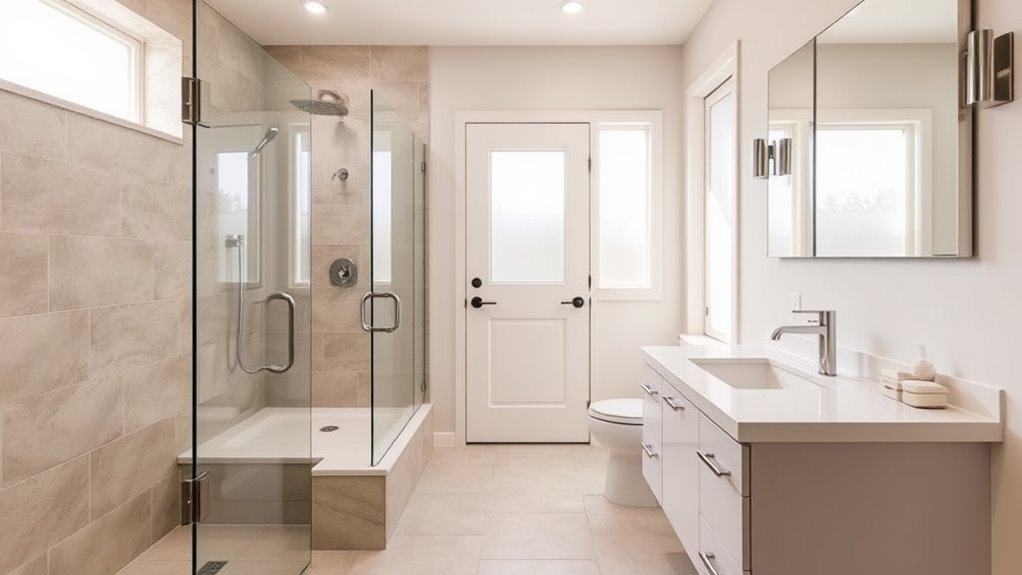 By embracing universal design, your bathroom becomes a sanctuary that welcomes everyone with open arms. Think of it as crafting a masterpiece where accessibility and style dance in harmony, turning your space into a timeless oasis. With thoughtful planning, you’ll create a haven as inviting as a warm hug, ensuring comfort and independence for years to come. So, take the leap—transform your bathroom into a beautiful symphony of function and elegance that truly speaks to all.