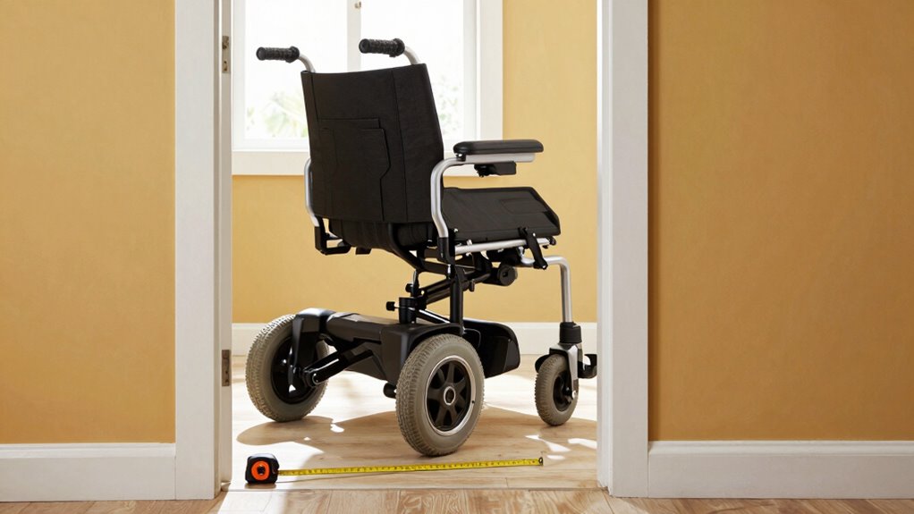 Don’t buy a power wheelchair until you measure your main entrance and five key doorways. Make sure your main entrance is at least 32 inches wide and check for any obstructions. Interior doorways should follow suit for smooth navigation. Hallways need to be 36 inches wide for easy turns, while bathrooms must have enough space for maneuverability. Finally, outdoor pathways should be clear and wide enough. Keep going to discover more essential accessibility tips!
