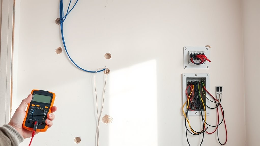 Pre-wiring your home for smart technology sets a strong foundation for reliable connectivity and easy future upgrades. Installing Ethernet cables, conduit, and strategic outlets guarantees seamless integration of devices like security cameras, smart thermostats, and voice assistants. Good planning also helps manage electrical loads safely and creates pathways for expanding your system later. By considering these steps now, you’ll avoid costly modifications later and maximize your smart home’s performance—keep going to discover how to get started.