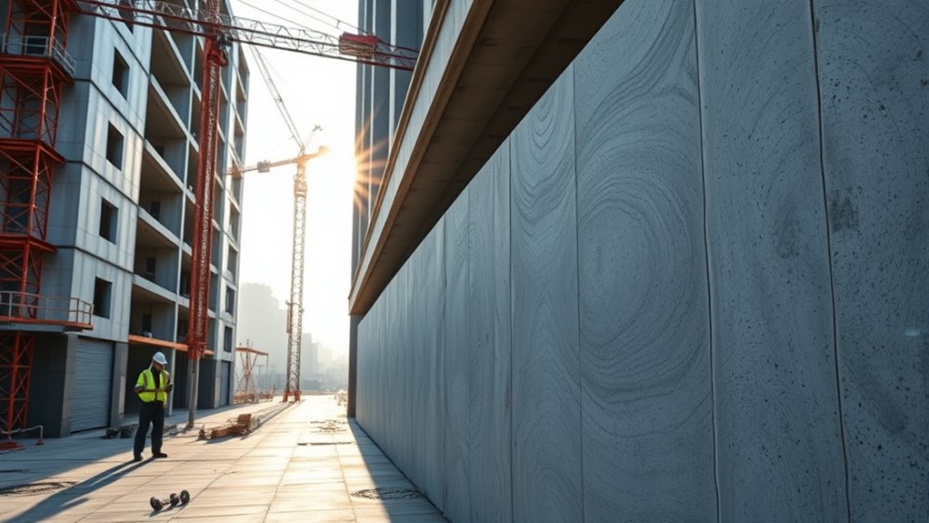 Using carbon-sequestering concrete offers exceptional long-term stability, making it as reliable as a fortress for your project. Its durability generally matches traditional concrete, with potential enhancements due to its unique composition. Over time, it reduces environmental impact by actively capturing CO₂. However, long-term performance depends on proper mixing and curing. Overall, it’s a sustainable choice that can stand the test of time while protecting the environment.