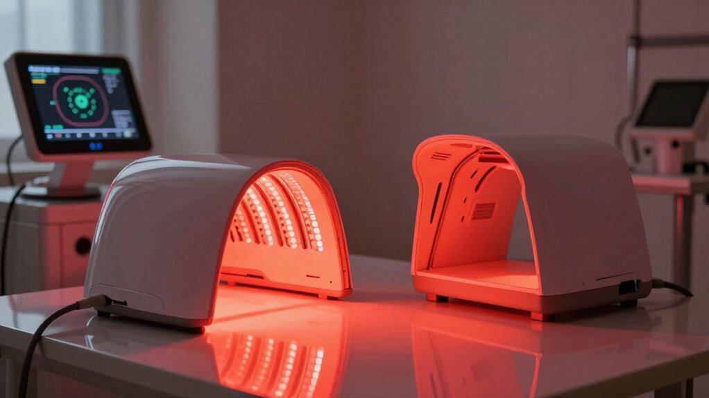 Red light therapy features several specific wavelengths, each tailored for unique applications. For instance, wavelengths around 630-670 nm are often used for skin rejuvenation due to their effective light absorption and therapeutic ranges. In contrast, 810-850 nm wavelengths target deeper tissues, making them ideal for pain relief and inflammation reduction. Clinical studies highlight the importance of wavelength specificity in achieving treatment precision. Wavelength modulation allows practitioners to customize treatments based on individual needs, enhancing targeted applications. By understanding the color spectrum and how different wavelengths interact with your body, you can maximize the benefits of red light therapy for various conditions. Whether you’re focusing on skin health or pain management, choosing the right wavelength is key to successful outcomes.
