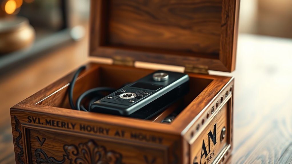 You might wonder how secure your stored audio data is. Voice-recorded keepsake boxes often use data encryption to protect your privacy, making unauthorized access difficult. While they typically have security measures, consider privacy concerns, especially if the device connects to the internet. You can enhance security by regularly updating firmware and choosing devices with strong encryption protocols, giving you peace of mind knowing your cherished memories stay private.