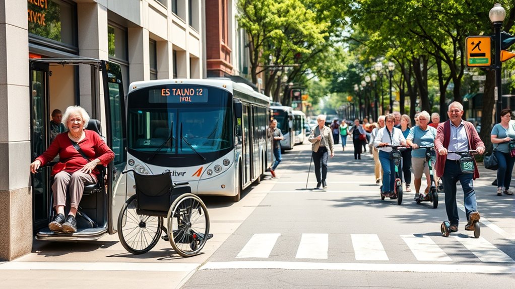 Think of urban transportation as a winding river—when it’s accessible, everyone can paddle along smoothly, no matter their age or ability. When you make transportation options inclusive, you’re opening a bridge across that river, allowing seniors to reach their destinations with ease. By ensuring these routes are clear and welcoming, you’re creating a current of independence and connection, helping everyone navigate city life confidently. Accessibility isn’t just a feature; it’s the essential flow that keeps the community moving forward.
