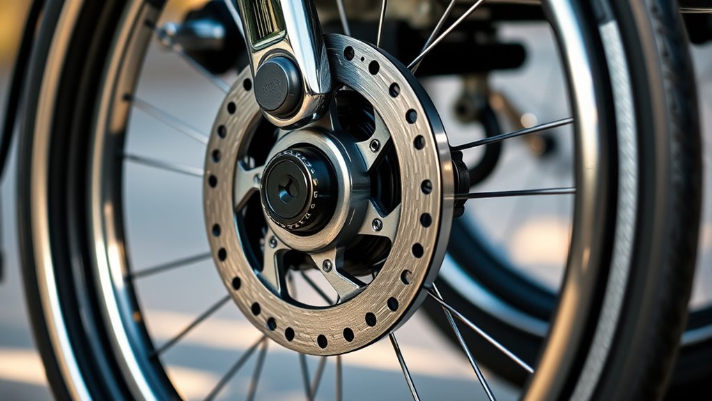Braking safety is equally vital, and dynamic systems excel in this area by providing precise control over stopping power. When you activate the brakes, sensors quickly assess the speed and weight distribution of the wheelchair, adjusting the braking force accordingly. This ensures a smooth and controlled halt, even on slopes or uneven surfaces. These systems are designed to prevent sudden jerks or slips, which could cause imbalance or falls. Additionally, many dynamic brakes feature automatic engagement when the wheelchair detects an incline or sudden acceleration, further enhancing safety. This proactive approach reduces the risk of accidents and gives you peace of mind while you’re moving around, especially in unpredictable environments.