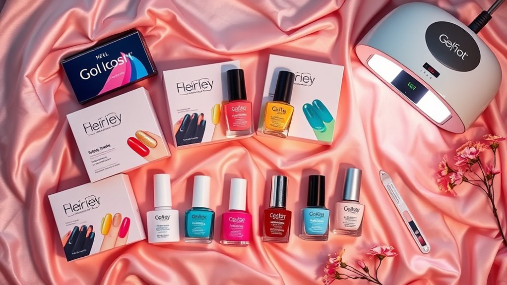 When I’m choosing a gel nail kit, I consider several key factors that can make or break my experience. The components and tools included, the variety of colors, and how easy the application process is all play a vital role. I also pay attention to the safety of ingredients and the features of the curing lamp to guarantee I’m making the best choice.