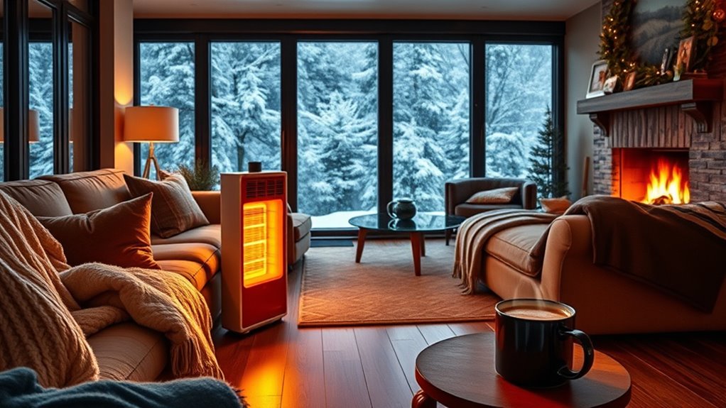 I’ve looked into the best space heaters for large rooms to keep you cozy this winter. My top picks include the Lasko Oscillating Digital Ceramic Tower and the Dreo Space Heater, both offering excellent heating power and sleek designs. The PELONIS 30” Ceramic Tower also stands out for its efficiency. With features like remote control and adjustable settings, these heaters make warmth easy and convenient. If you want to know more about choosing the right one, just keep going.