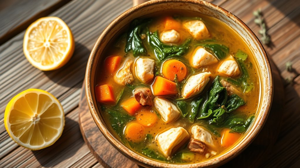 A classic chicken and vegetable soup offers a hearty way to boost your immune system with nutritious ingredients. You can customize it with different vegetables to suit your taste and enhance its health benefits. To get the best flavor and texture, follow simple cooking tips and serve it hot for maximum comfort and nutrition. Incorporating nutrient-rich ingredients can further strengthen your immune defenses during early fall.