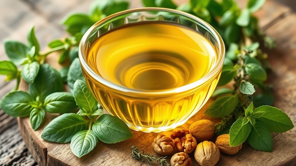 Choosing the best oils for heart health involves selecting options rich in monounsaturated fats and omega-3s, like extra virgin olive oil, avocado oil, flaxseed oil, and walnut oil. These oils help lower bad cholesterol, reduce inflammation, and support overall cardiovascular health. It’s also essential to avoid hydrogenated fats and trans fats found in processed foods. To learn how to incorporate these oils properly into your diet and maximize their benefits, keep exploring this guide.